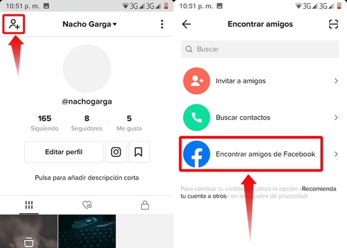 Si no tienes su número de teléfono, pero sí son amigos en Facebook, puedes encontrar a esa persona en TikTok sin saber su usuario de la siguiente forma: