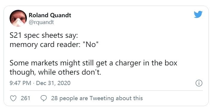 Una nueva información de configuración del teléfono móvil Galaxy S21 de Samsung ha sido develada y tomó por sopresa a más de uno. Recientemente, un usuario de Twitter @rquandt , quien ha dado predicciones certeras con antriorirdad, dijo que el teléfono móvil S21 ya no estará equipado con una ranura para tarjetas micro SD.