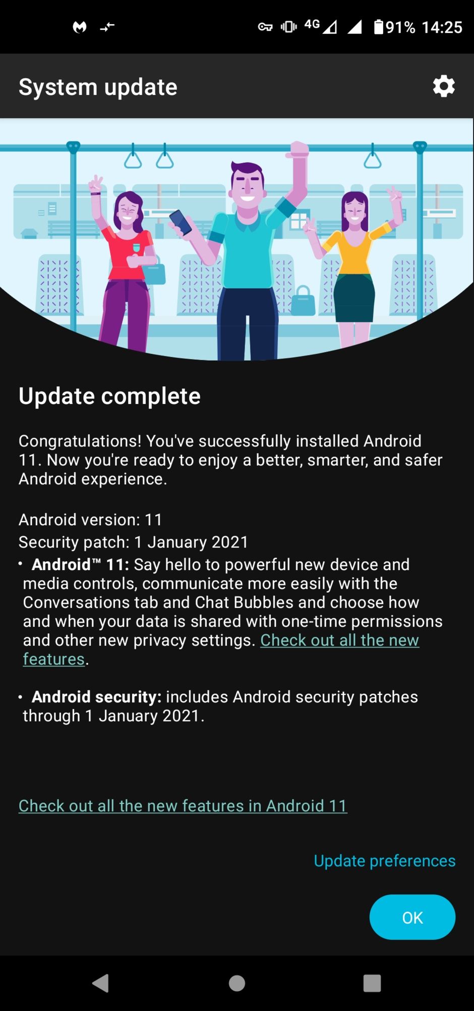 El lanzamiento será escalonado y al parecer está limitado al Reino Unido por el momento. La actualización en sí pesa 1103.8 MB y también trae el parche de seguridad de enero de 2021. Si aún no has recibido una notificación, puedes intentar verificar la actualización manualmente yendo al menú de actualizaciones del sistema en Configuración.