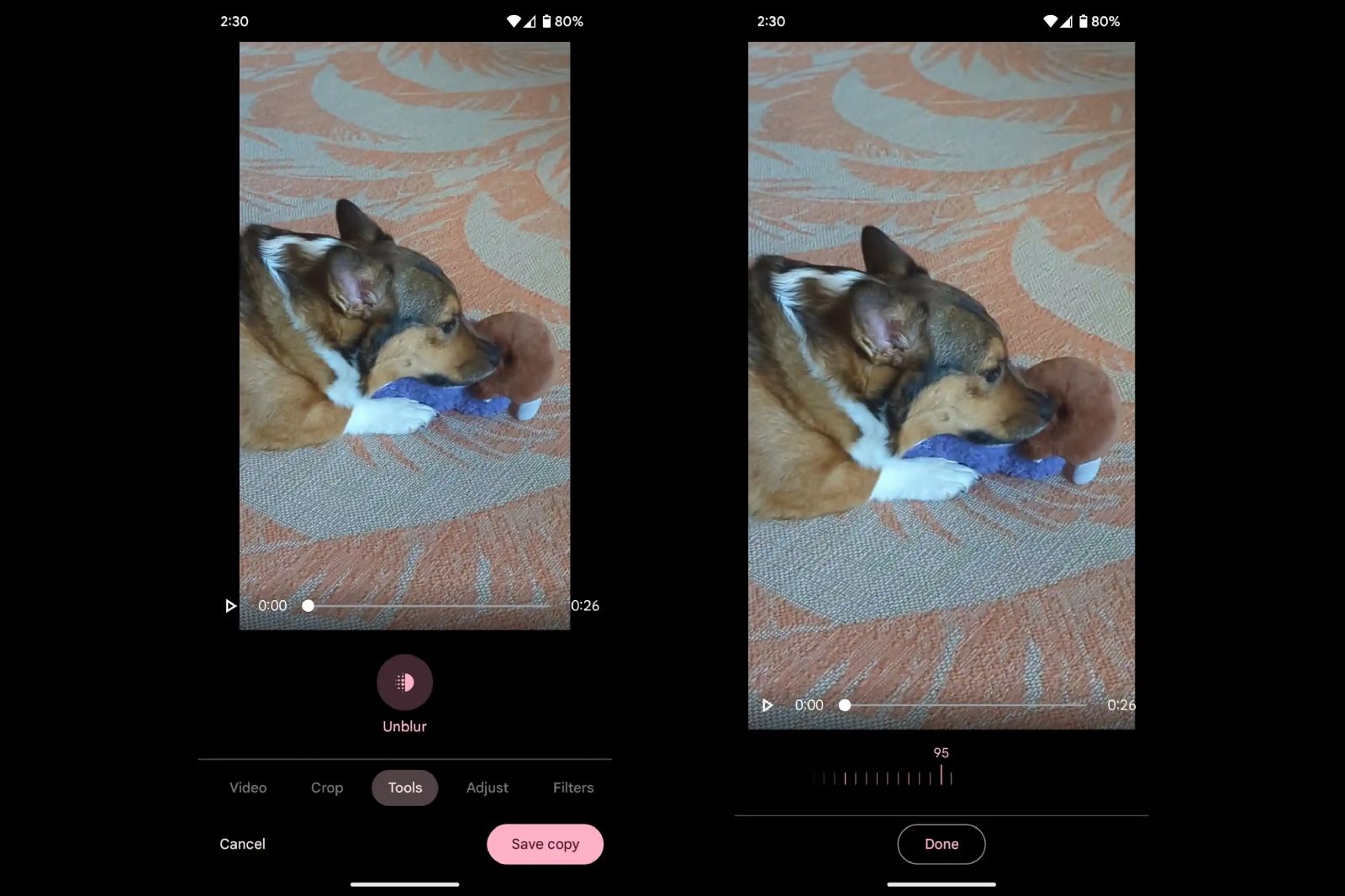 Google ha presentado Photo Unblur el año pasado, junto con la serie Pixel 7. Esa característica sigue siendo exclusiva de la serie Pixel 7, y parece que Video Unblur podría debutar en los buques insignia de este año.