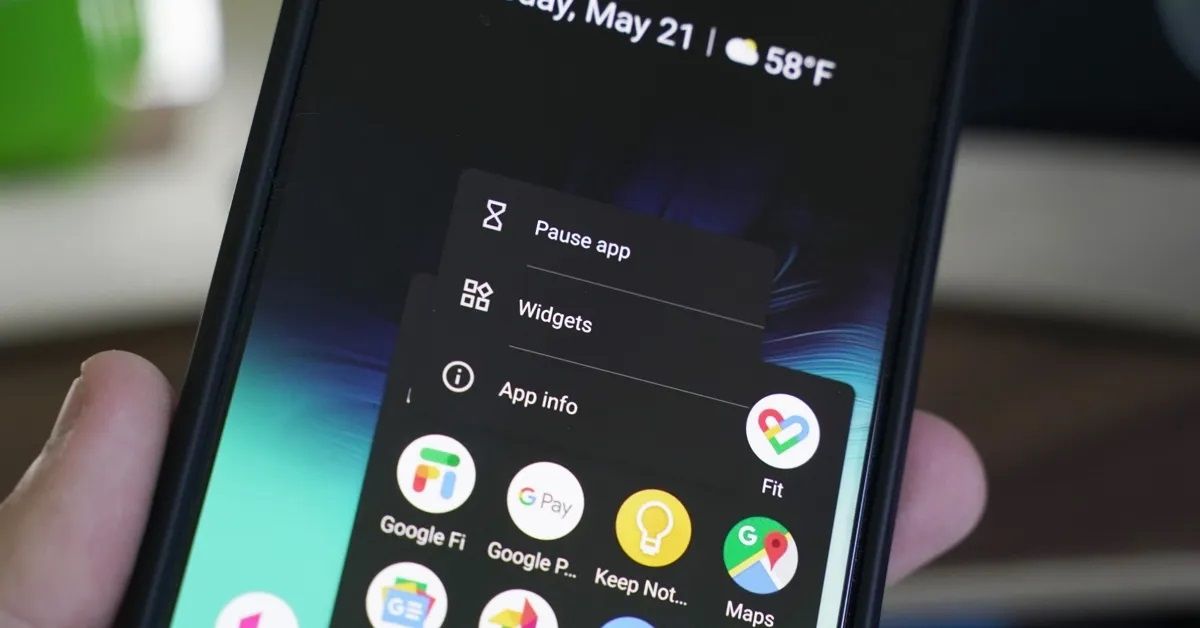Para "pausar" una aplicación en tu Google Pixel tienes que realizar una pulsación larga sobre el icono de la app que quieres pausar y tocar en el icono del reloj de arena que aparece en la parte superior izquierda de la ventana emergente. Sabrás que la aplicación se ha pausado correctamente porque su icono aparecerá en un color sombreado.
