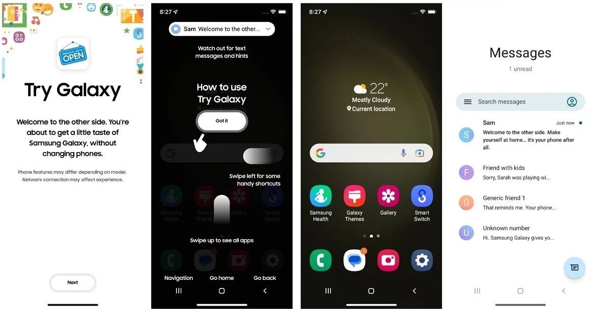 La aplicación web Try Galaxy actualizada ahora permite a los usuarios de iPhone probar la serie Galaxy S23 y las funciones One UI 5.1. Estas adiciones incluyen demostraciones y tutoriales para las capacidades de la cámara Nightography, la herramienta Photo Remaster y la personalización del sistema (por ejemplo, fondos de pantalla, interfaces de mensajes, íconos). Todas estas adiciones se unen a demostraciones existentes de funciones como Smart Switch, borrado de objetos y Samsung Health.
