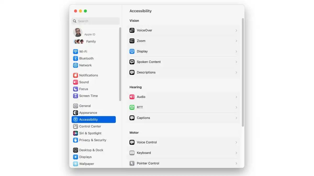 Vaya a Preferencias del sistema (macOS Monterey) o Configuración del sistema (macOS Ventura, como se muestra arriba) y haga clic en Accesibilidad.