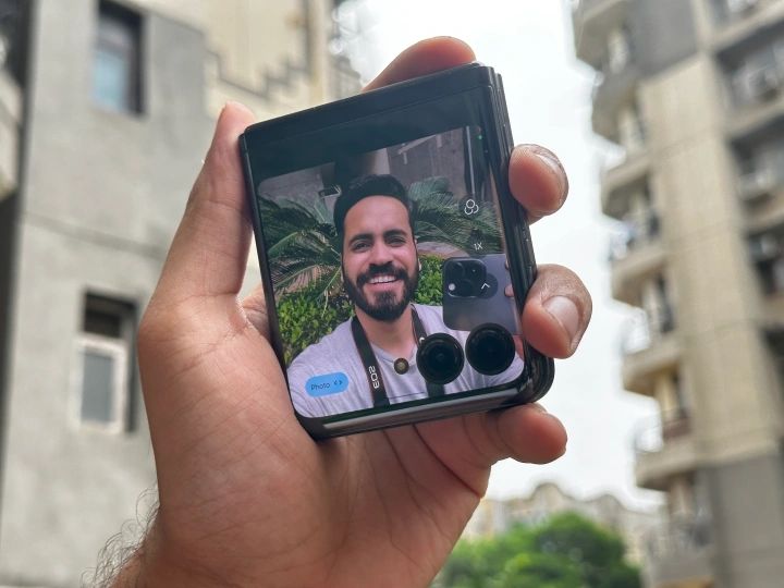 El Motorola Razr+ lo lleva al siguiente nivel al permitirme acceder rápidamente a la cámara con un giro de muñeca. No es necesario desbloquear y tocar el ícono de la cámara para que se inicie la aplicación; solo un giro es suficiente. Se suma a la experiencia general. Podrás usar las cámaras traseras como selfies y al mismo tiempo tener un visor de pantalla completa con una experiencia fantástica.