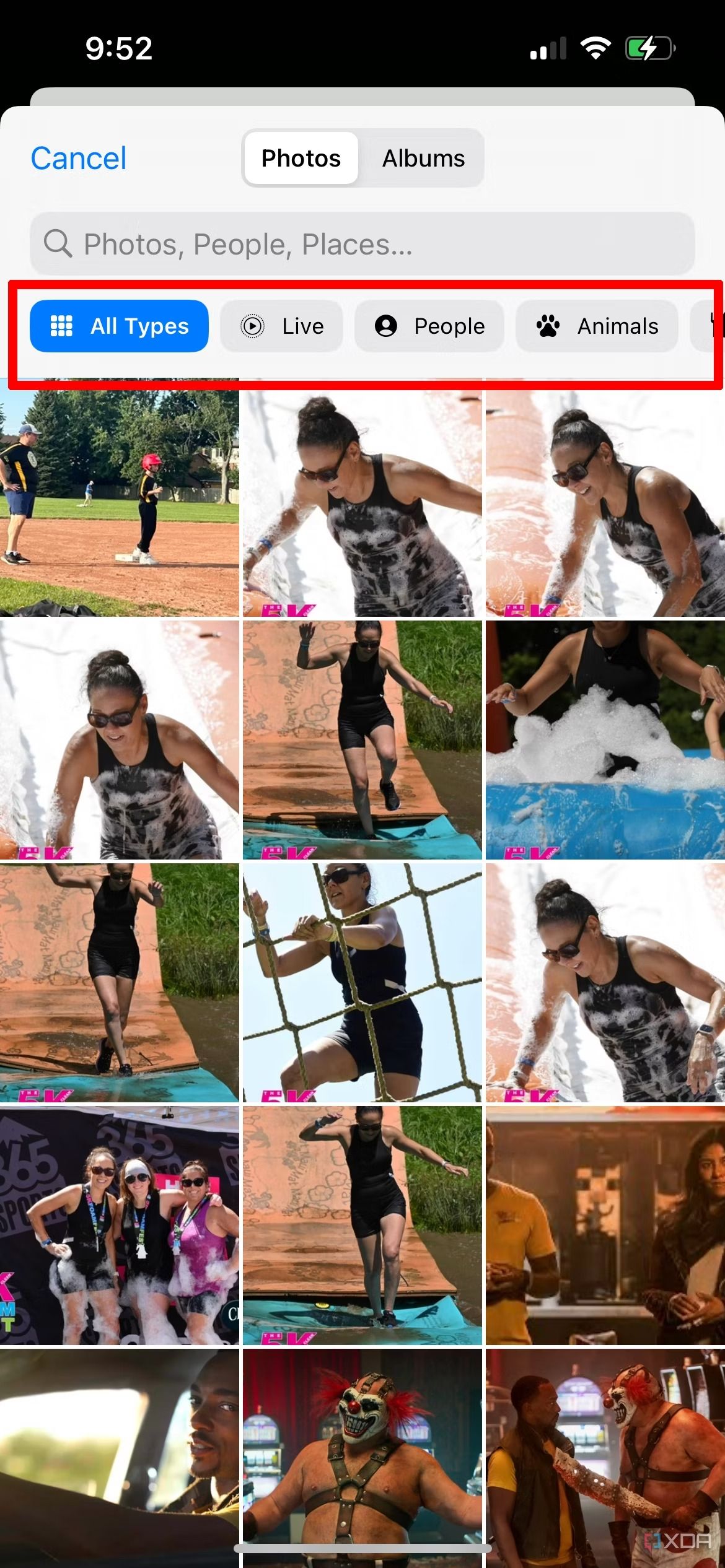 - Toque el signo "+" para crear una nueva etiqueta de una de las fotos en su biblioteca. También puede usar el menú en la parte superior para filtrar solo por Live Photos (requerido para pegatinas animadas) y fotos con personas, animales, comida, vehículos o estatuas.