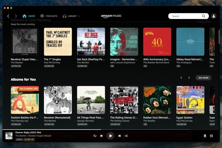 Amazon Music es un servicio de transmisión de música similar a Apple Music, Spotify, YouTube Music, Tidal y Deezer. Ofrece una biblioteca de más de 100 millones de canciones y una amplia gama de podcasts populares para transmitir y descargar para escucharlos sin conexión. Al igual que sus competidores, los usuarios de Amazon Music tienen acceso a una gran cantidad de canciones y álbumes actuales y de catálogo anterior y pueden crear sus propias listas de reproducción que se pueden compartir. También utiliza sus hábitos de escucha para crear recomendaciones: nuevos artistas, álbumes, listas de reproducción seleccionadas, podcasts y más, para ayudarlo a encontrar fácilmente algo bueno para reproducir. HD y Ultra HD (más sobre esto a continuación), lo cual es importante si está considerando Spotify, ya que actualmente no lo hace.