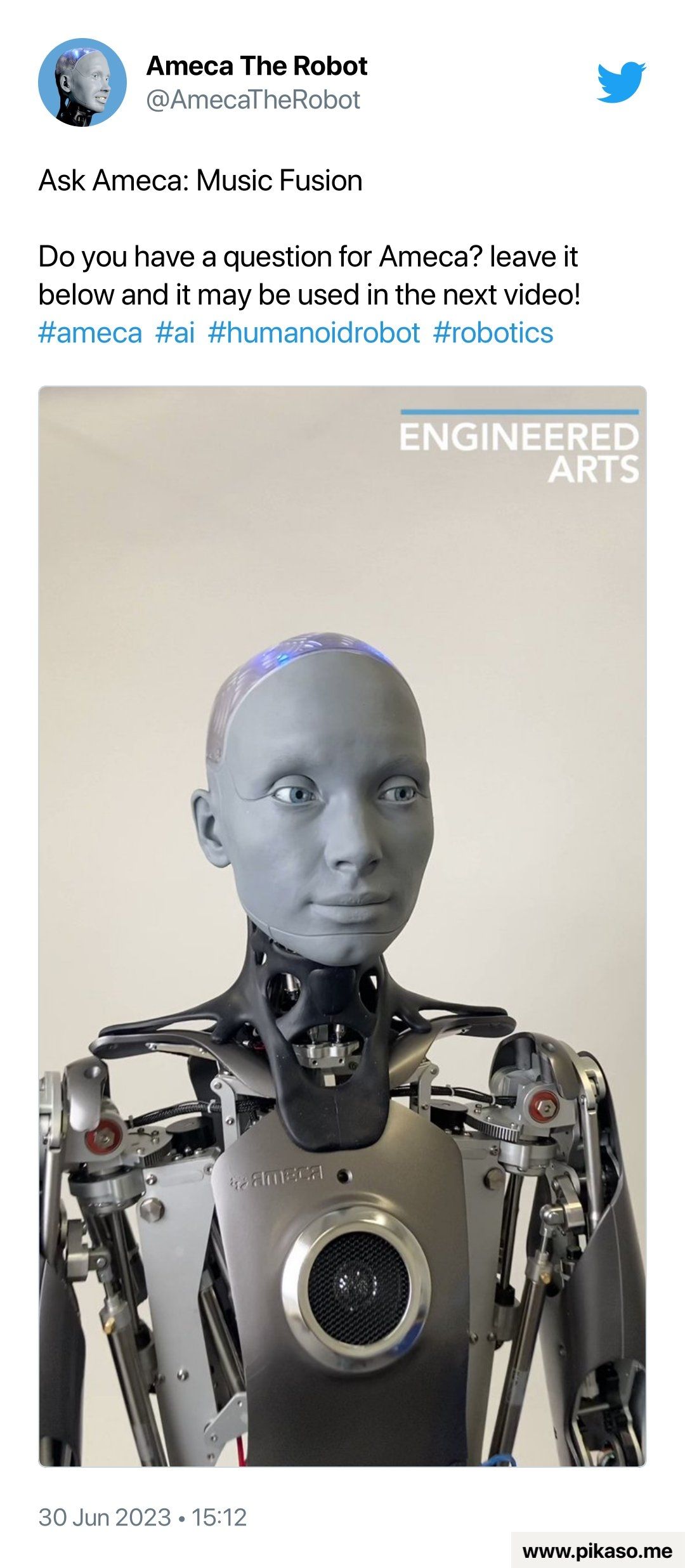 El equipo detrás de Ameca periódicamente organiza sesiones de preguntas y respuestas para afinar el rendimiento del robot y obtener información sobre su identidad. En un evento reciente, la cuenta de Twitter oficial de Ameca, compartió las respuestas del robot acerca del futuro de la mecatrónica. No obstante, el androide evadió estratégicamente el tema, debido a la incertidumbre que rodea a la evolución de estas creaciones tecnológicas en las próximas décadas y el temor.