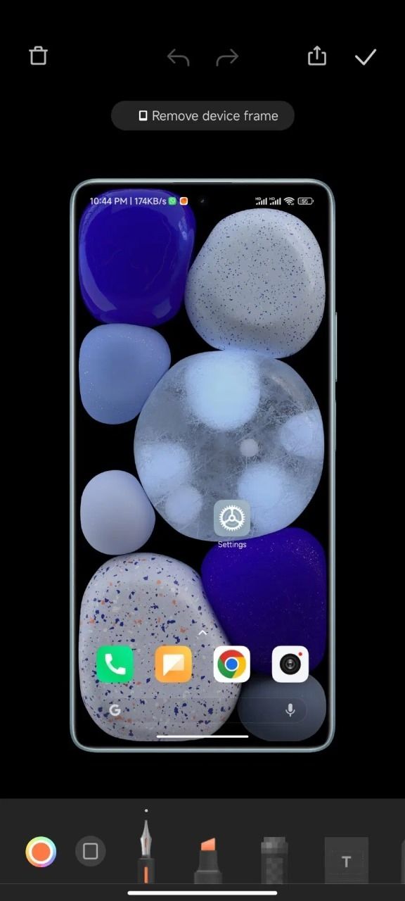El marco de captura de pantalla permite a los usuarios agregar automáticamente el marco de sus dispositivos con un solo toque después de tomar una captura de pantalla. Esto permite a los usuarios agregar el marco del dispositivo sin problemas a través del editor de galería MIUI sin la necesidad de agregar manualmente el marco del dispositivo o descargar aplicaciones adicionales después de tomar una captura de pantalla.