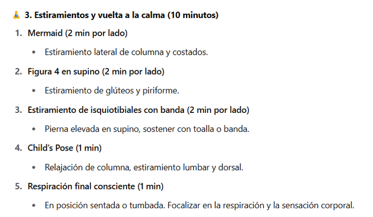 - Estiramientos y vuelta a la calma (10 minutos)