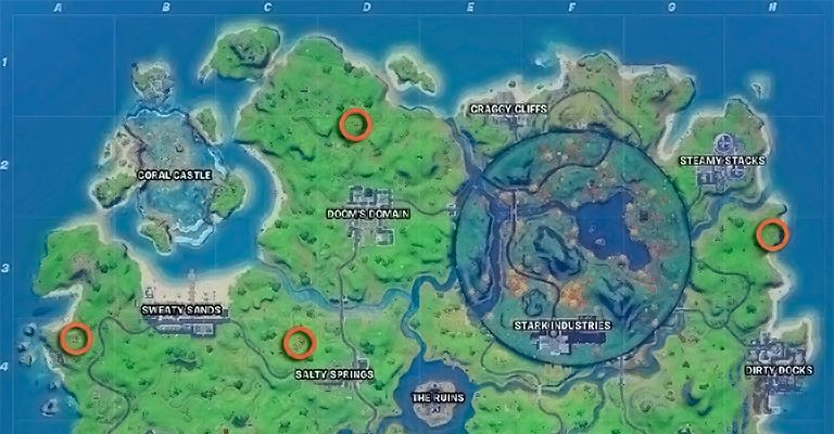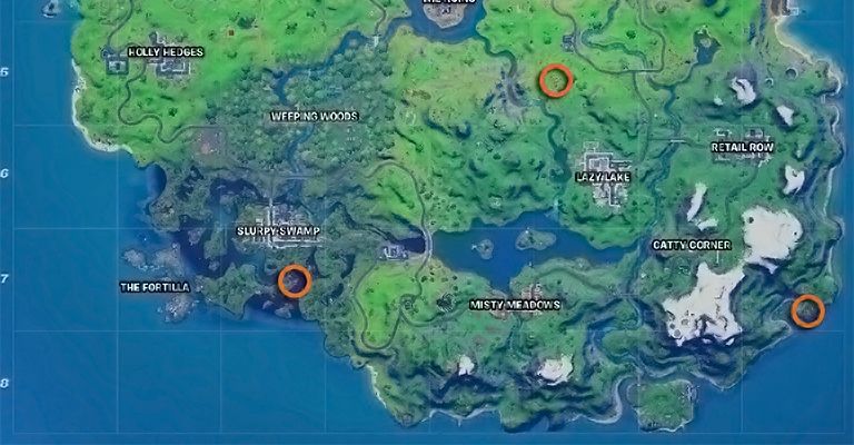 Hay un total de siete ubicaciones diferentes que han aparecido alrededor de la isla y que hemos marcado en el mapa. También tenemos una descripción de texto para dónde encontrar cada uno: