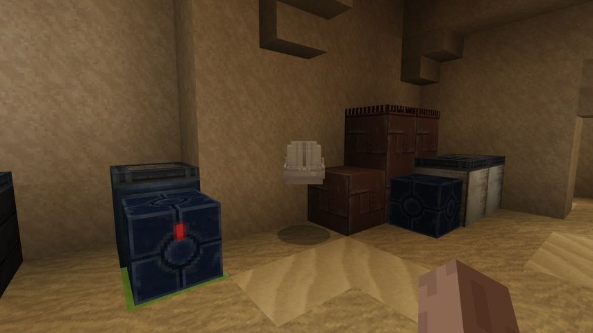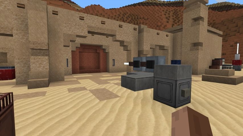 Desde el centro de la base, Baby Yoda está encerrado detrás de una puerta de piedra arenisca naranja. El equipo de Minecraft se ha tomado la molestia de hacer un láser para pasar. Haga clic en el botón y observe cómo se incinera la puerta.