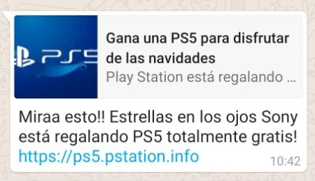 Es muy probable que por estas horas nos llegue un mensaje de WhatsApp sobre una PlayStation 5 gratis, procedente de uno de nuestros contactos, y tengamos dudas sobre si es cierto. El mensaje regalará una PlayStation 5 y suena extraño.