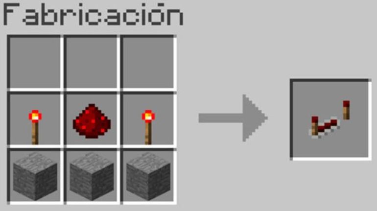 Vas a necesitar tres bloques de piedra, una Redstone y dos antorchas de Redstone. Para obtener piedra solo tienes que fundir adoquines en un horno. En teoría, es lo más difícil de conseguir.