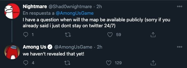 Sin embargo, sólo porque esas cosas secretas están programadas para diciembre, no significa que se lanzarán este mes. La cuenta de Twitter Among Us recibió respuestas de otros que respondieron a la provocación y preguntaron cuándo saldría el mapa. La fecha de lanzamiento del mapa aún no se ha anunciado, por lo que probablemente sea un poco pronto para adivinar cuándo se lanzarán las sorpresas.