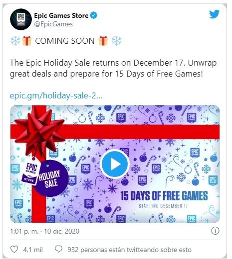 A través de Twitter, la desarrolladora ha informado que repetirá las ofertas y regalos para la Navidad que ya se compartió el año pasado. Con el agregado de que en esta ocasión será por 15 días.