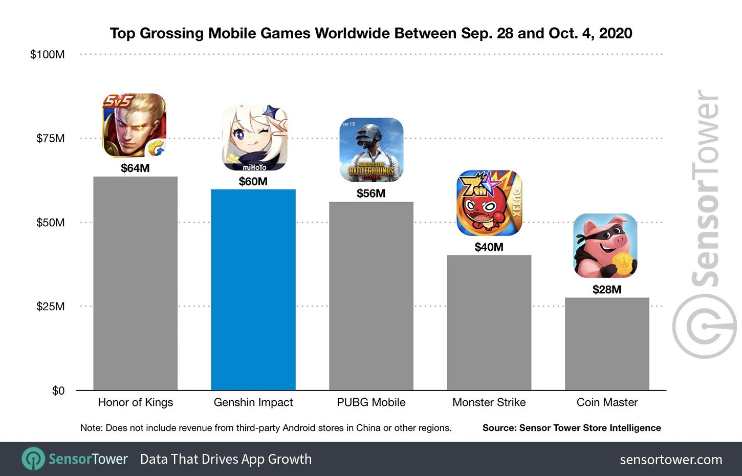 Genshin Impact sólo ha sido superado por Honor Of Kings en la última semana. Era de esperarse, ya que es un juego que siempre está a la vanguardia.