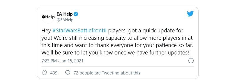 Desde EA confirmaron la noticia por las redes sociales oficiales de la firma, y explicaron que los problemas se debieron a que el número de jugadores aumentó considerablemente en pocos días.