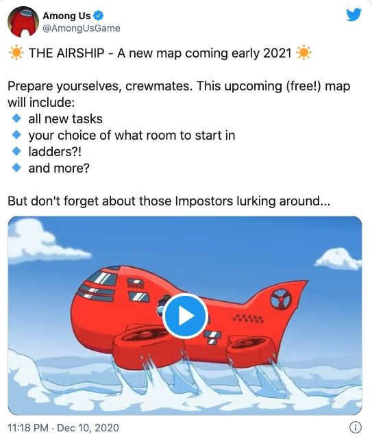 Durante las primeras semanas de diciembre de 2020, Among Us anunció a través de Twitter que agregaría un nuevo mapa. Nombrado Airship, incluirá muchas características nuevas, pero la más notable de todas es la inclusión de una escalera en el mapa. Ahora, y a manera de adelanto, Among Us les da a los fanáticos el primer vistazo de la nueva escalera.
