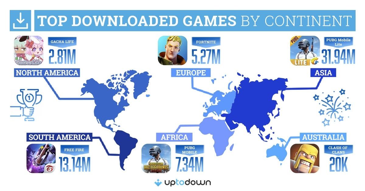 En las últimas horas, Uptodown, la famosa tienda para dispositivos Android, ha publicado un mapa en el que detalla cuáles son los juegos más famosos por continente.