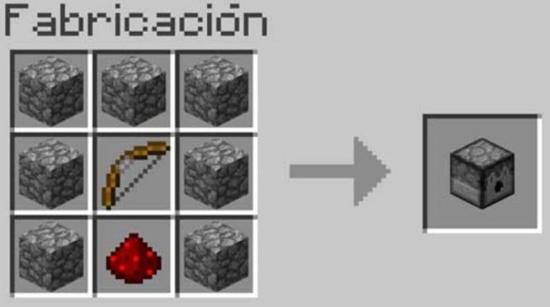 Primero que nada necesitarás los siguientes elementos: siete rocas, un arco y la Redstone. Una vez que los tengas, tendrás que irte a la mesa de trabajo y colocar cada ingrediente como se ve en la imagen.