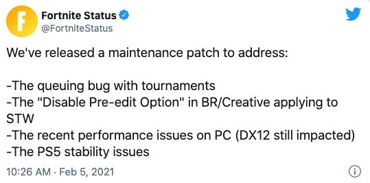 Puedes leer las notas completas del parche proporcionadas por Epic Games en los links de las lista o en la publicación realizada en Reddit.