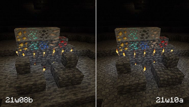 Si bien no generarán en el mundo por defecto, se han agregado versiones de cobre, esmeralda y minerales de carbón, para uso de creadores de mapas y paquetes de datos.
