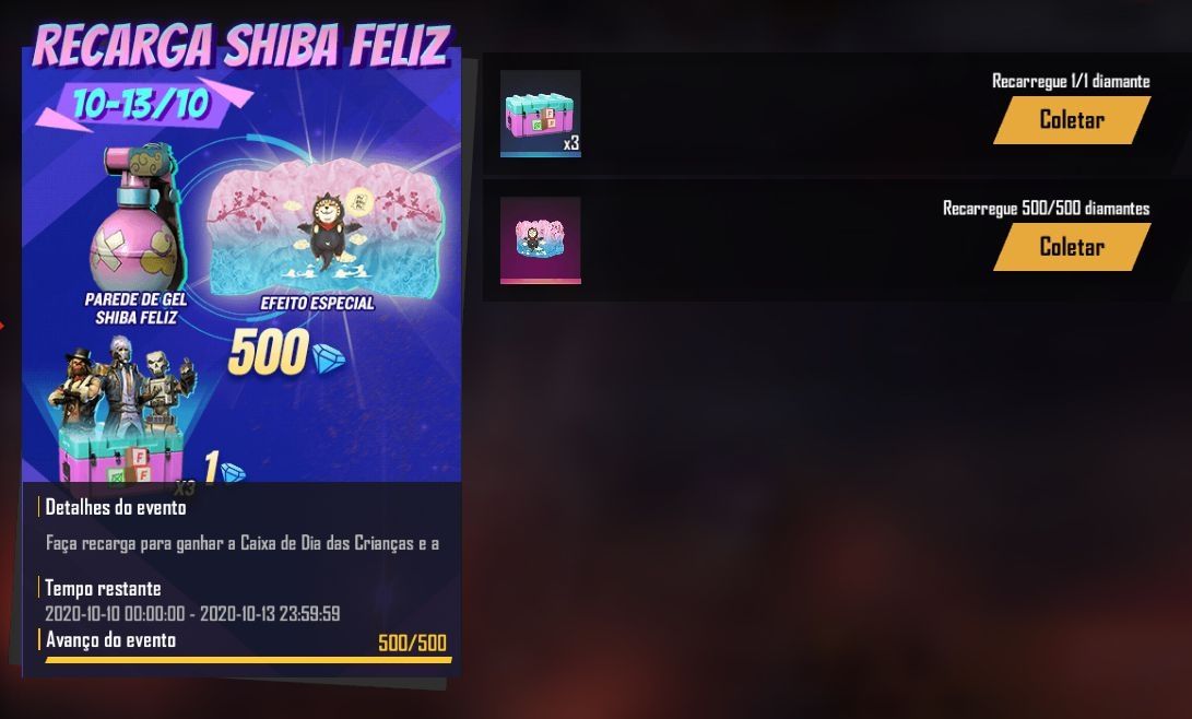 El evento de bonificación de recarga se lleva a cabo de dos a tres veces por semana, donde Garena presenta a los jugadores un artículo después de haber realizado una recarga de diamantes Free Fire. Hay un objetivo para ganar el bono en Free Fire, la compañía estipula una cantidad mínima en diamantes para canjear cada recompensa.