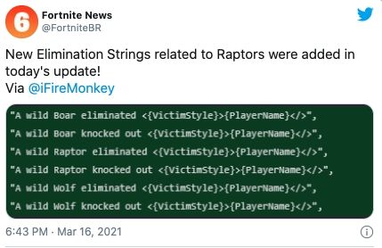 Según algunos usuarios en Twitter, el código en la última actualización tiene algunas líneas que refieren a “Raptors salvajes”, lobos y jabalíes. También hay referencias a la palabra "DINO" en los archivos del juego.
