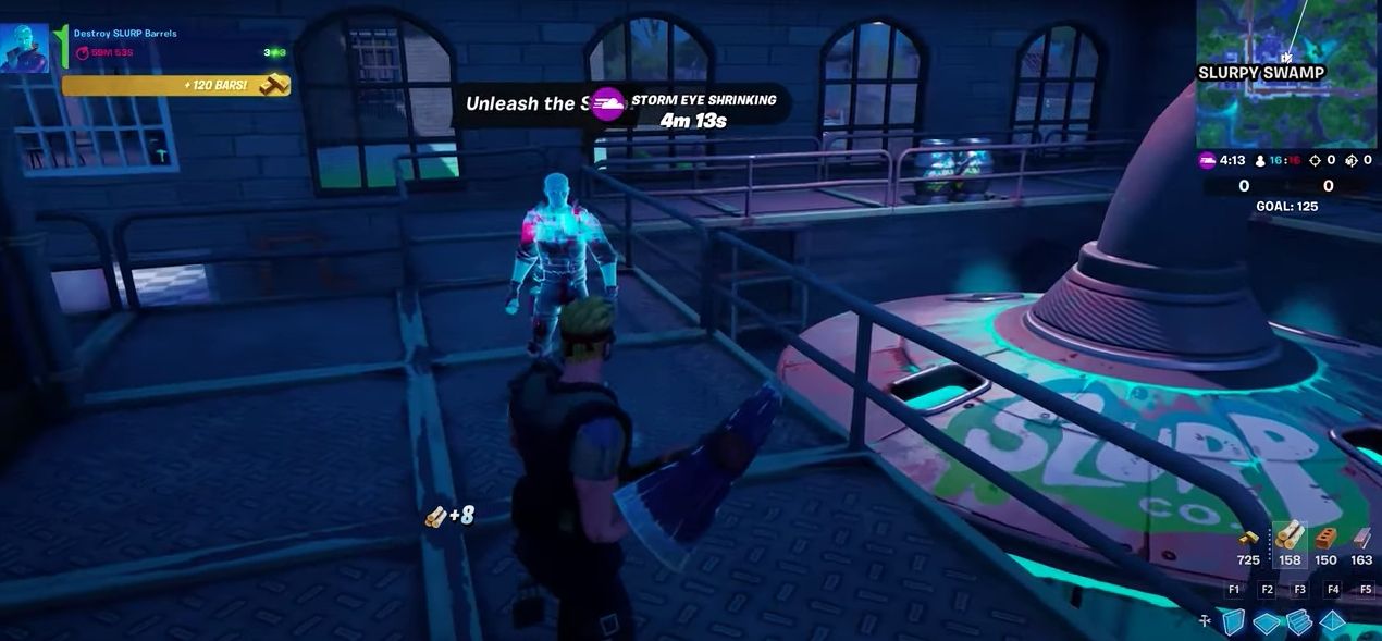 La primera tarea es destruir un par de barriles de Slurp específicos, que se pueden encontrar literalmente al lado de Slurp Jonesy. La segunda tarea es obtener salud y escudos hasta 100. Estas dos misiones resultan en recibir 220 de oro inmediatamente. A partir de ahí, los jugadores de Fortnite pueden simplemente abandonar la partida, saltar a otra y repetir el proceso sin cesar, recibiendo 220 de oro cada pocos minutos.