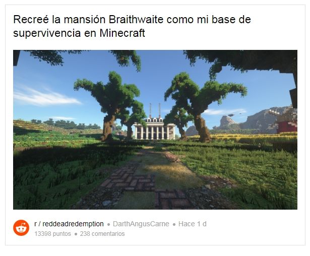 El jugador de Minecraft y Redditor u / DarthAngusBeef recrearon una ubicación icónica en Red Dead Redemption 2 de Rockstar, Braithwaite Manor. El juegono solo se parece al original, sino que también se hizo en el modo de supervivencia de Minecraft .
