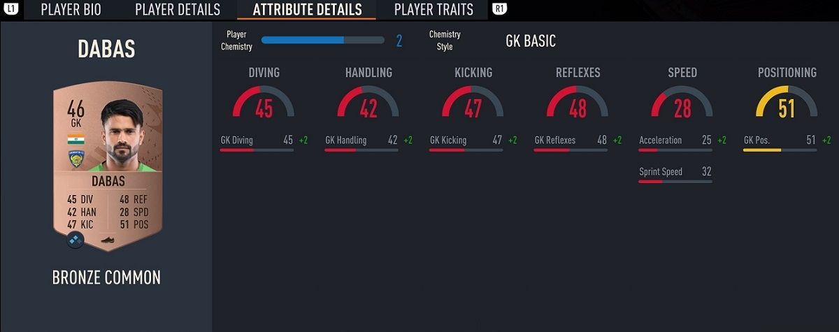 El peor portero de FIFA 23, lo cual es mucho decir. Dabas tiene solo 21 años y es el portero suplente del Chennaiyin, de la Superliga de India.