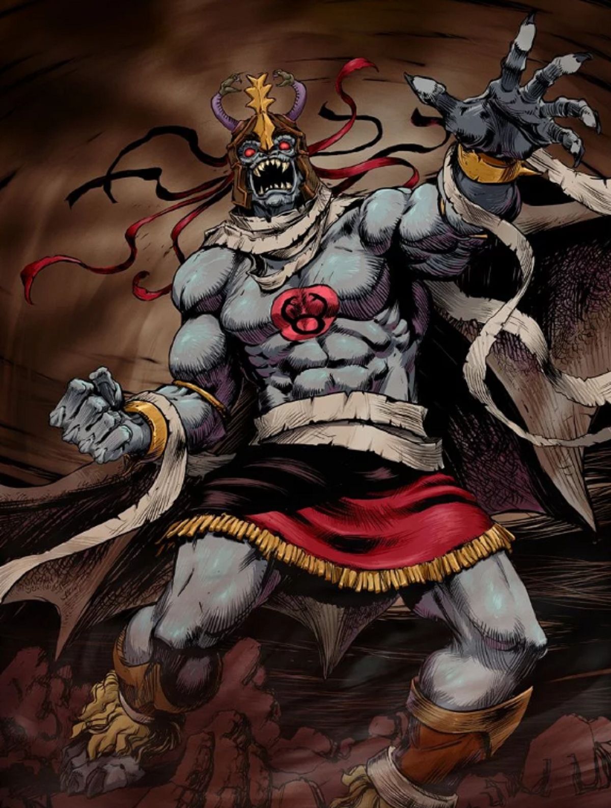 La historia de los ThunderCats nos regaló uno de los personajes más inolvidables de la década de los 80 y 90: Mumm-Ra, su principal villano. Dicho personaje es una momia de apariencia frágil, con la piel cubierta de tejido necrótico color azul, ojos grandes y rojos, y apenas una capa para cubrirse.