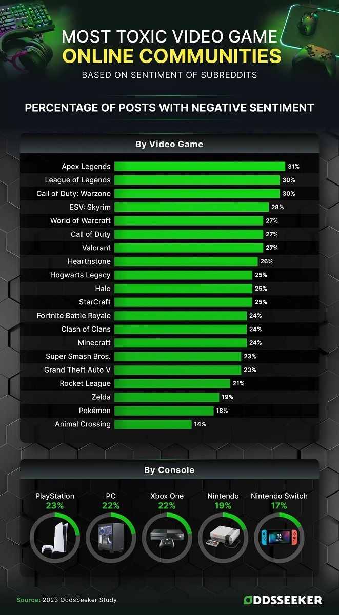 Aunque esta situación es común en numerosos videojuegos multijugador, incluso en aquellos de pago, es ampliamente reconocido en la comunidad de jugadores que ciertos títulos son más propensos a albergar conductas tóxicas. De acuerdo con un estudio realizado por el medio Oddsseeker, que analizó los comportamientos negativos de los jugadores en sus partidas, los resultados revelaron algo sorprendente para muchos: el juego con la comunidad más tóxica resulta ser Apex Legends y la plataforma más tóxica es PS5.