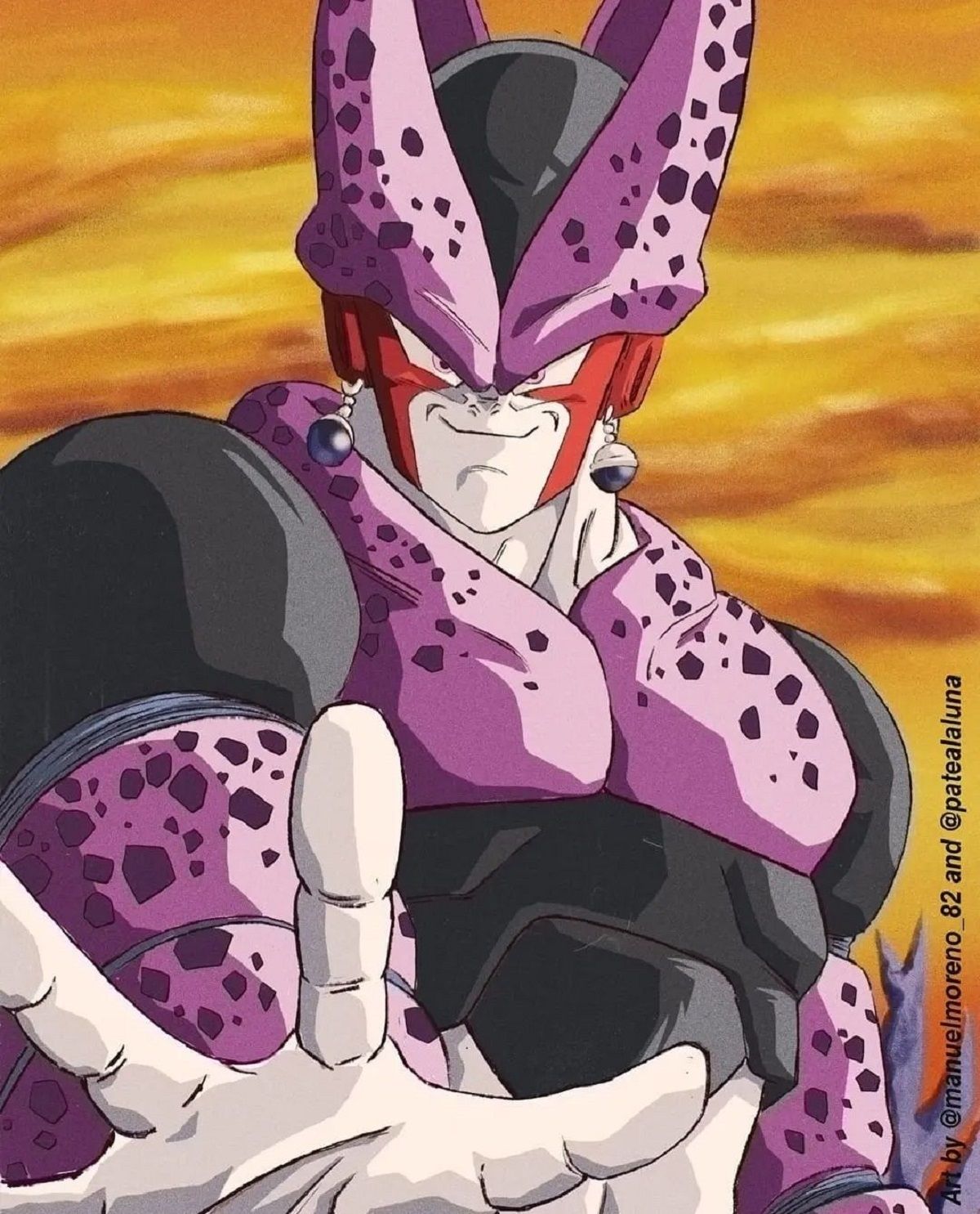 En la imagen podemos observar un Cell completamente distinto, incluso sus facciones son muy parecidas a la Freezer. El color de la piel del androide ha cambiado con tonalidades muy semejantes a las de Freezer. Claro está, no pueden faltar los Arcillos Pothala en las orejas del villano. La pregunta es cuál sería su nombre. Dinos tú qué te parece.