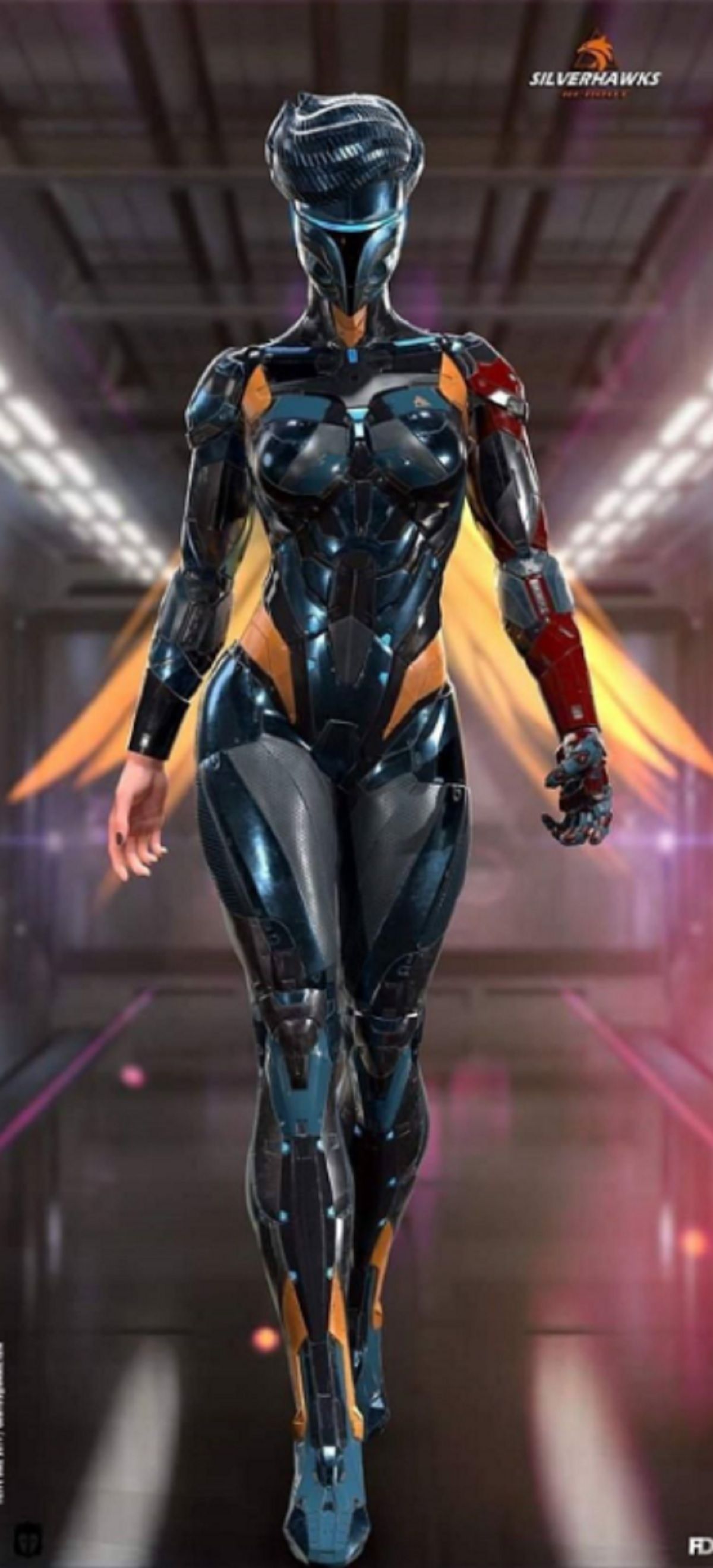 La imagen creada por Felipe Díaz no solo respeta los elementos visuales característicos de Acerina, sino que añade detalles modernos que potencian su realismo. En esta reinterpretación, se aprecia un traje que mantiene los tonos clásicos de la serie, con toques de amarillo y un brazo rojo que le otorgan un aire renovado. Su rostro, cuidadosamente detallado, mantiene las líneas y expresiones originales, transportando a los fans directamente al universo de los Halcones Galácticos.