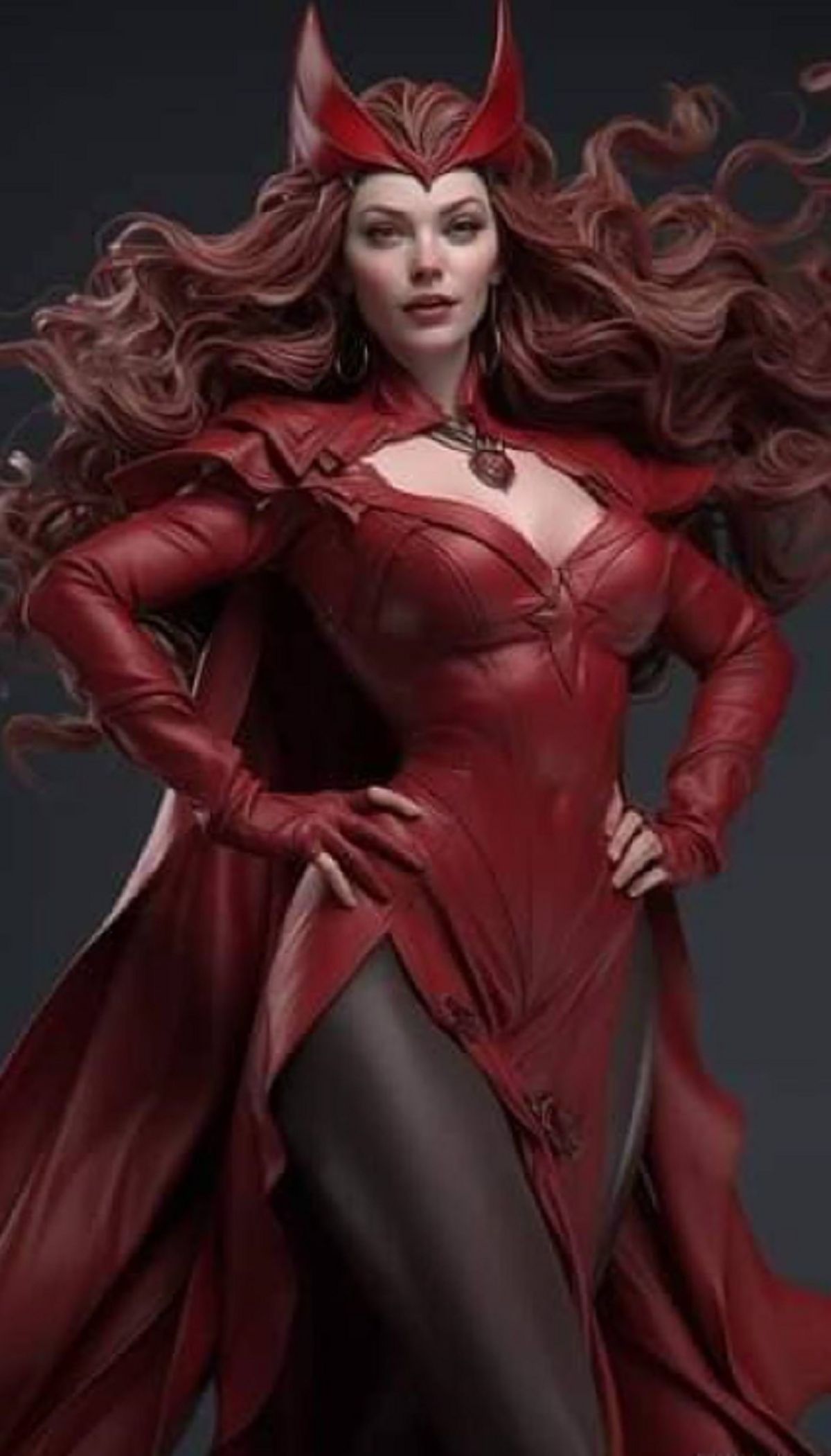 Las plataformas de inteligencia artificial nos sorprenden con representaciones que evocan poder y destreza, con una mirada que refleja determinación y un aura de peligro latente. My Smart Art nos brinda una recreación sorprendente, mostrando a la Bruja Escarlata lista para el combate en un entorno oscuro, resaltando su poder y determinación. Luciendo el traje que ha llevado en el Universo Cinematográfico de Marvel. Eso sí, en las imágenes la vemos con una sonrisa. ¿Quién sabe qué trama?
