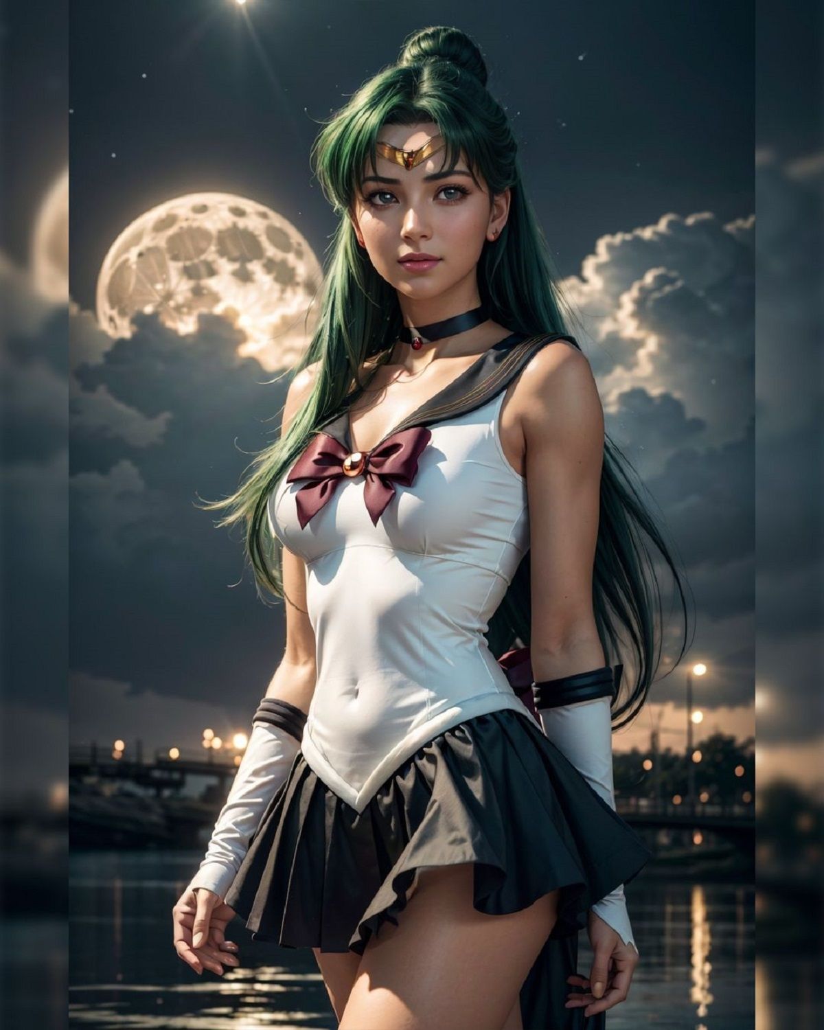 Makoto Kino, o Sailor Jupiter, es la guerrera de la electricidad y la fuerza física. Su poder Supreme Thunder genera potentes rayos que no solo son visualmente impresionantes, sino también devastadores en combate. La IA ha capturado la dualidad de Sailor Jupiter, combinando su fuerza bruta con su compasión y lealtad.