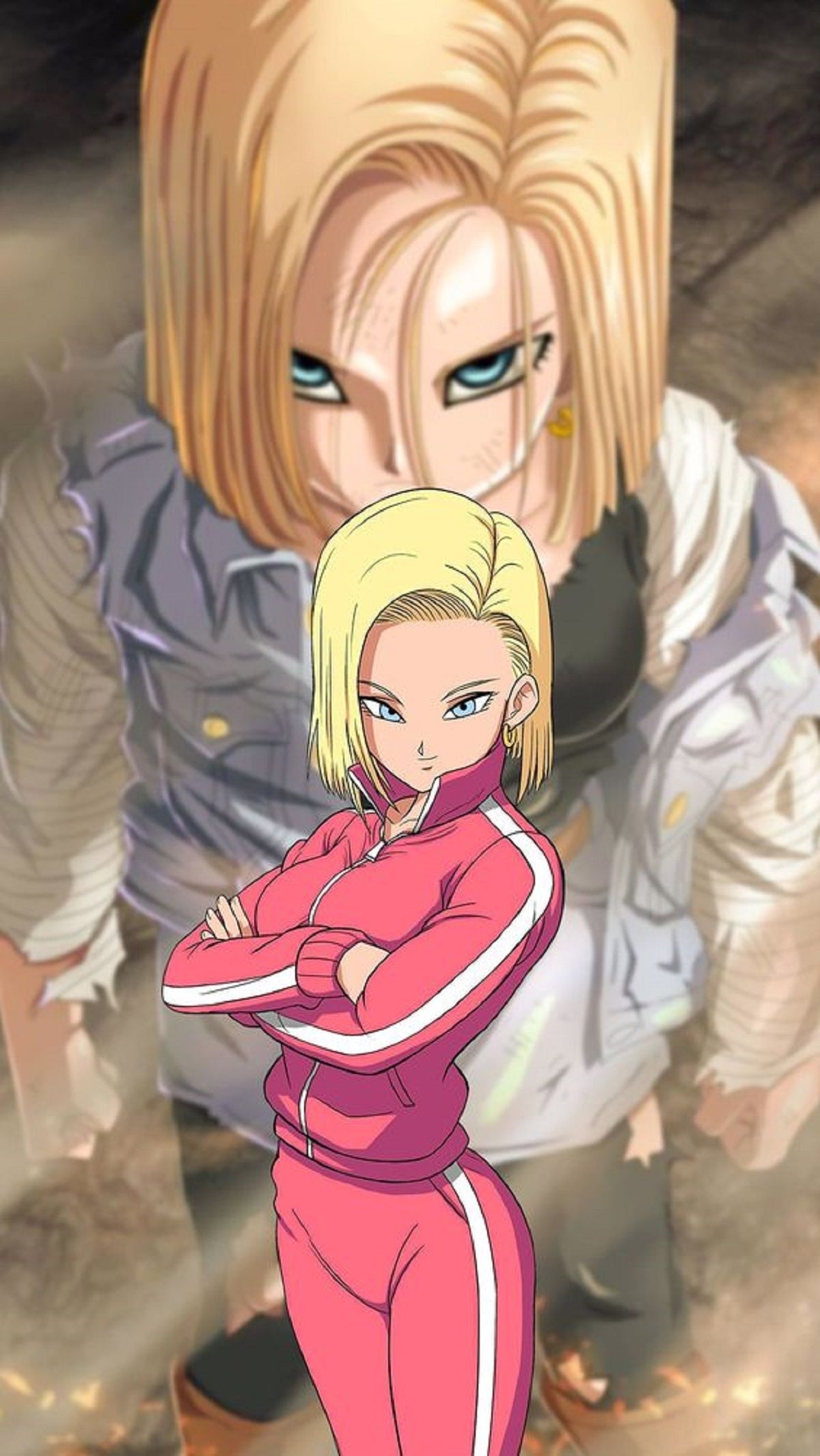 En esta versión, la Androide 18 aparece con una armadura ajustada que combina la funcionalidad militar con el diseño icónico de Capitana Marvel. El traje, menos licrado y más estructurado, cubre todo su cuerpo, destacando un cinturón utilitario en lugar de la tradicional faja. El arte conceptual muestra a una Androide 18 alta y segura, mirando con determinación y esperanza hacia el horizonte.