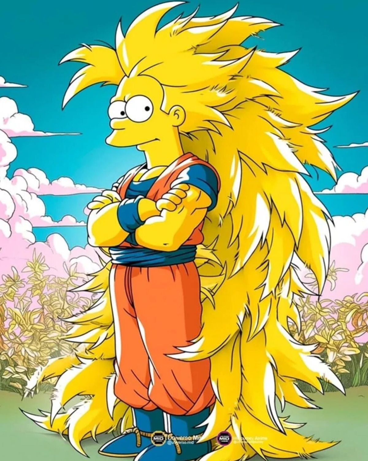 Si bien nunca veremos algo así en el canon de Dragon Ball ni en Los Simpson, estas fusiones nos permiten imaginar un multiverso donde Goku podría compartir una cerveza en la Taberna de Moe o enfrentarse a Kang y Kodos en un especial de Noche de Brujas. Además, el diseño conserva los elementos distintivos de la fase Super Saiyajin 3: la larga melena dorada y la expresión feroz de un guerrero listo para la batalla.