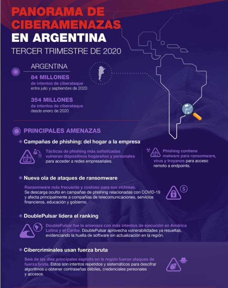 Los datos surgen de un estudio elaborado por Fortinet Threat Intelligence Report para LATAM y Argentina y corresponde al periodo comprendido entre julio y septiembre de 2020.