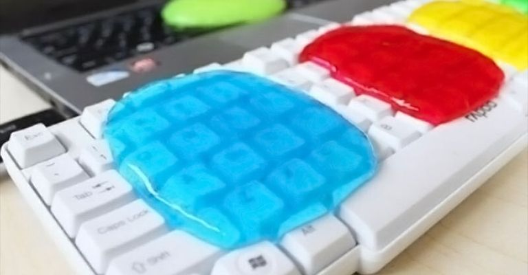 Para limpiar las migajas, el polvo u otros escombros más grandes que entraron en sus teclas, coloque su computadora portátil boca abajo y permita que se caigan. Toque suavemente la parte inferior del chasis para desalojar las partículas rebeldes. También puede presionar un limo de limpieza (material pegajoso y flexible para estos casos) en los espacios entre las teclas, ya que se adhiere y recoge los escombros.