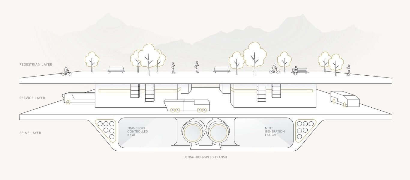 Sin embargo, sin automóviles y con 45ºC de día, el transporte debe poder resolverse de alguna manera. Aprovechando la estructura lineal de la ciudad, se construirá un transporte subterráneo que recorrerá los 170 kilómetros en solo 20 minutos. Teléfono para Elon Musk.