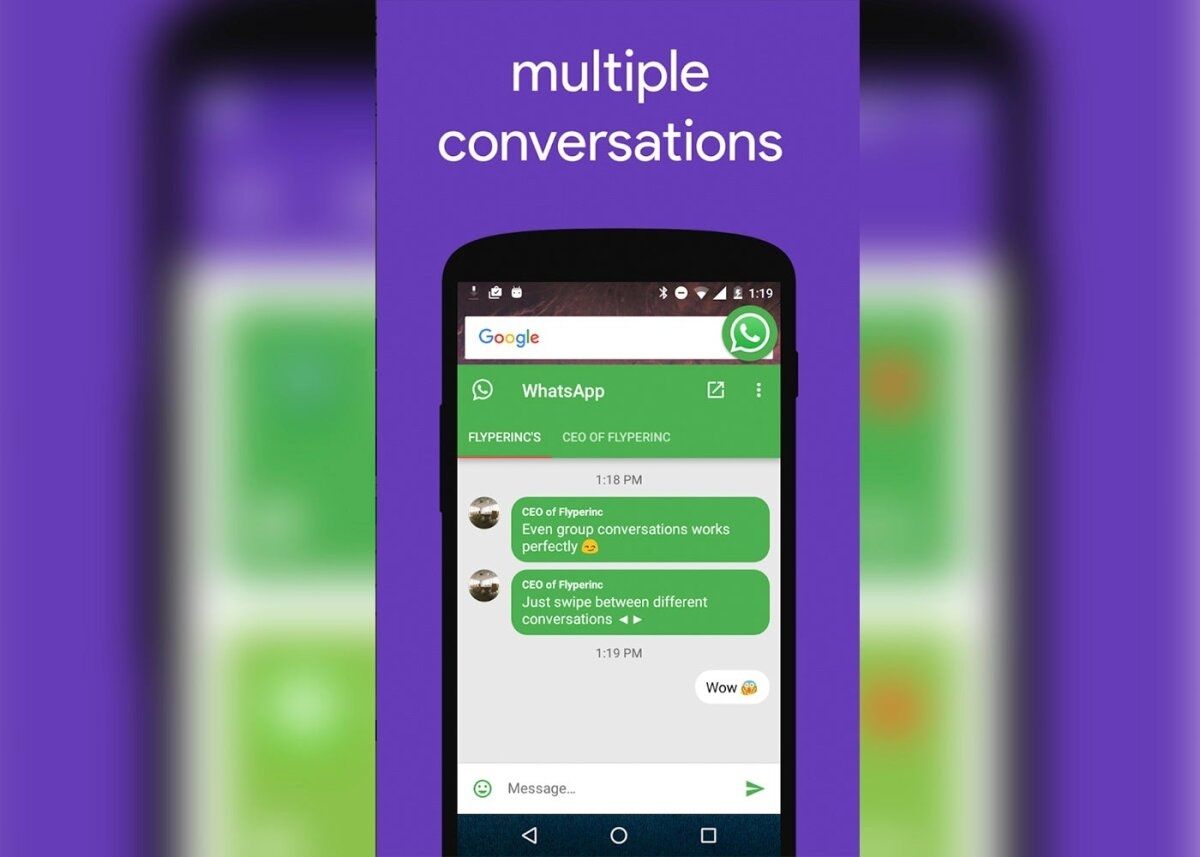 Para que nadie vea que estamos en línea o escribiendo en WhatsApp debemos descargar la aplicación Flychat. Es bastante ligera, y tiene una interfaz muy simple.