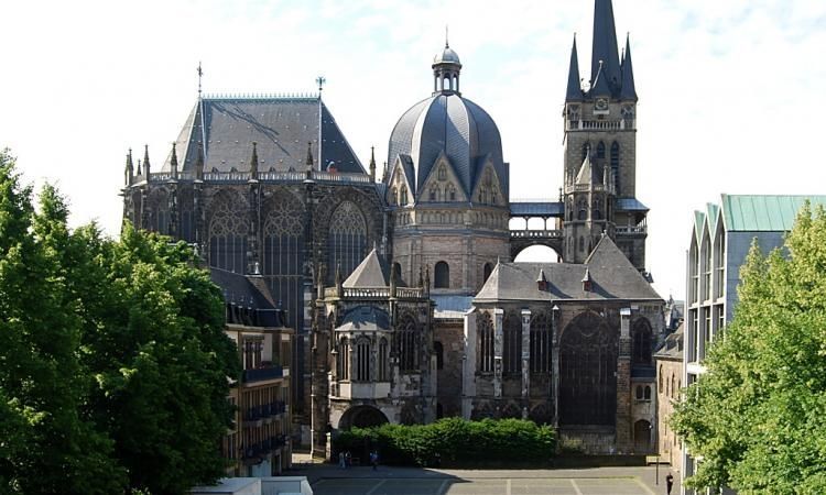Ejemplifican con la Capilla Carolingia de Aquisgrán (foto inferior) del año 800 que posee arcos edificados sin antecesores. Es como si la construcción hubiese llegado 200 años antes de sus precedentes.
