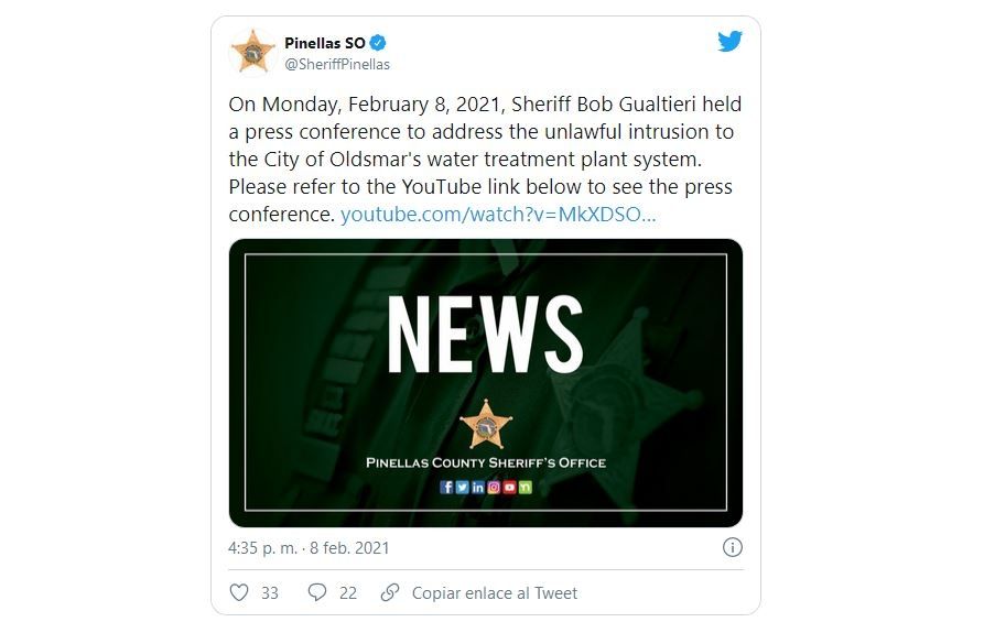 Un hacker logró acceder de manera remota a los servidores de una planta potabilizadora de agua e intentó subir los niveles de hidróxido de sodio (también conocido como soda cáustica o sosa cáustica) para envenenar a todos los habitantes de la ciudad de Oldsmar, Estados Unidos.