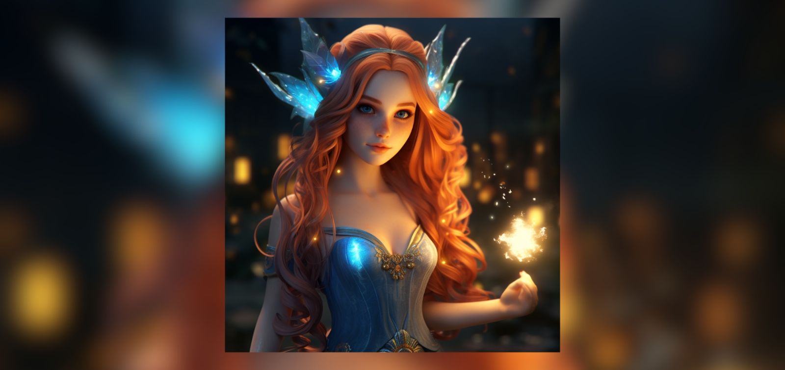 La recreación de Bloom, mediante inteligencia artificial Midjourney, ofreció a una hermosa mujer pelirroja con el icónico atuendo celeste del hada. La atención al detalle en la recreación es impresionante, mostrando no solo su apariencia física, sino también sus alas en su forma de hada.