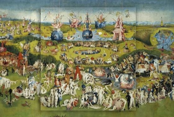 La tercera obra de arte que esta inteligencia artificial tomó para expandirla y mostrar un poco más allá del ojo del artista es “El jardín de las delicias” del artista Jheronimus Bosch. El jardín de las delicias es el nombre contemporáneo con el que se conoce a una de las obras más conocidas del pintor neerlandés Jheronimus Bosch. Se trata de un tríptico pintado al óleo sobre tabla.