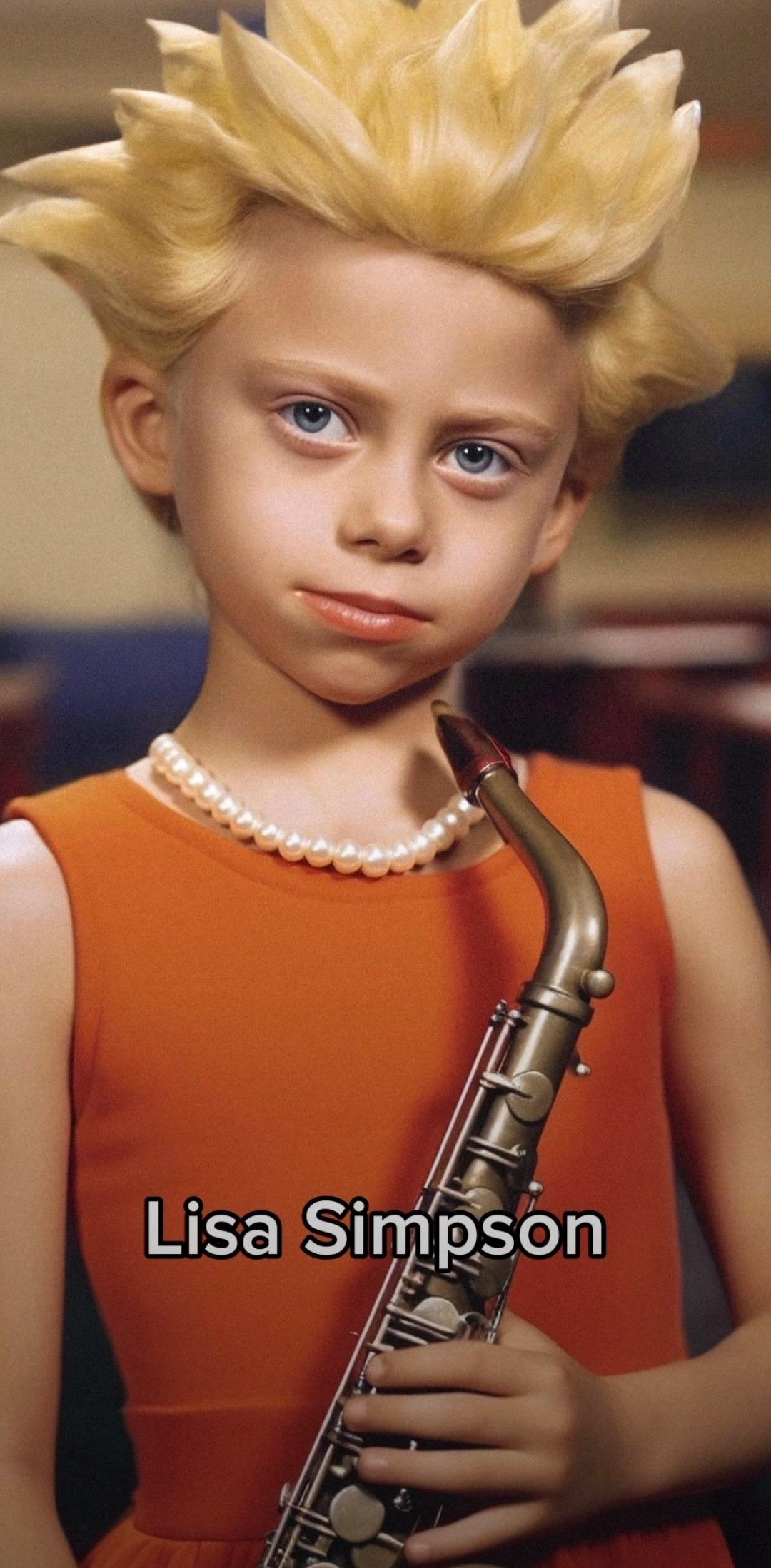 La recreación de Lisa Simpson resulta sorprendente en cuanto a su estilismo. La inteligencia artificial ha plasmado a la joven con cabello rubio y corto, destacando su identidad visual y, de manera notable, incluyendo su inseparable saxofón, elemento distintivo del personaje en la serie.