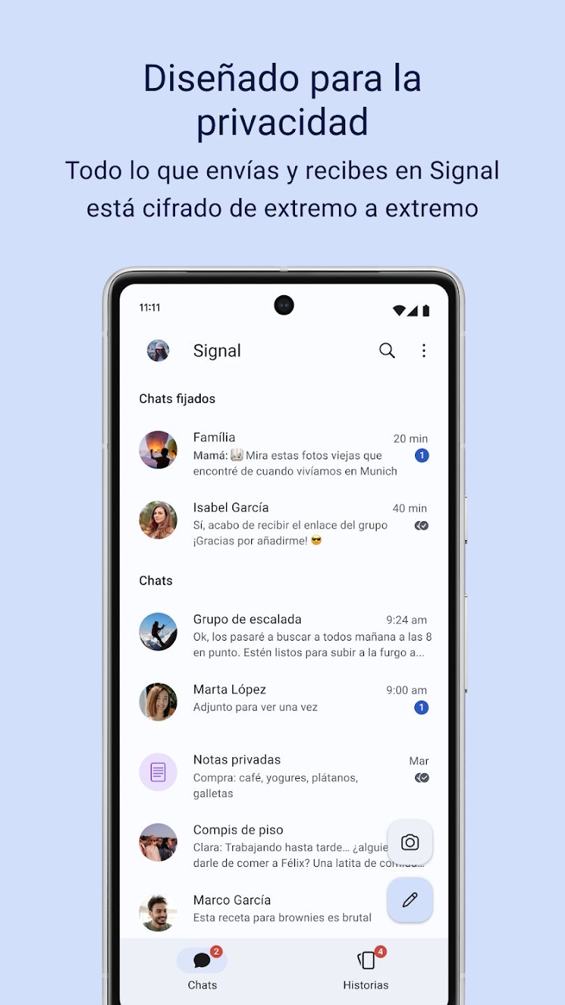 Pero si hablamos de seguridad, la mejor aplicación de mensajería instantánea es Signal, ponderada por millones de usuarios (entre los que se destaca Elon Musk) como la más segura para enviar y recibir mensajes. El servicio cuenta con un código abierto cuyos protocolos y funcionamiento se encuentra publicados en la plataforma GitHub, motivo por el cual permite que los usuarios puedan verificarlos.