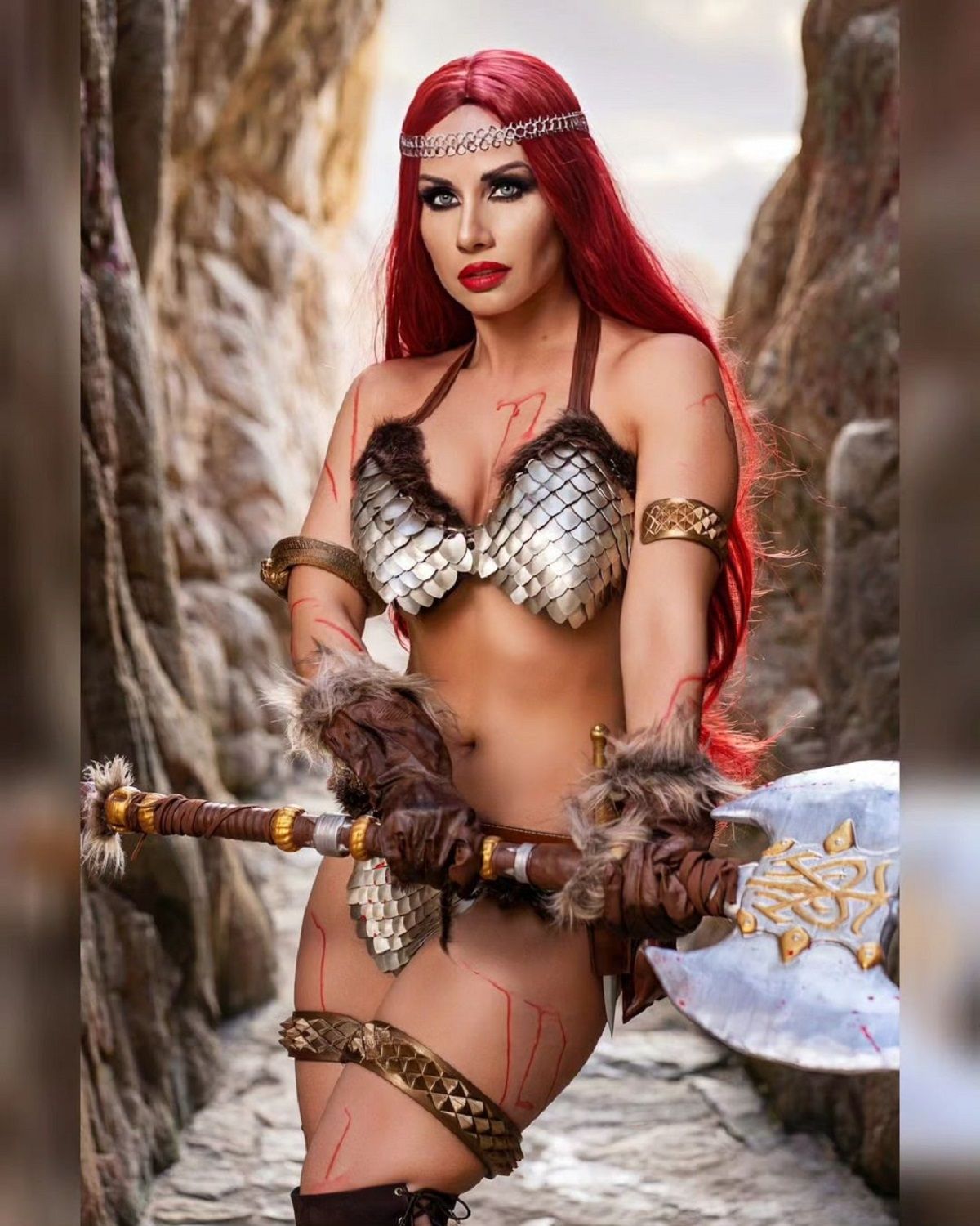 En este caso, la conocida cosplayer Claudia Alejandra se inspira en ella para realizar con cosplay de Red Sonja que combina su propio sello, y con un estilo con una sensualidad y empoderamiento implicó.